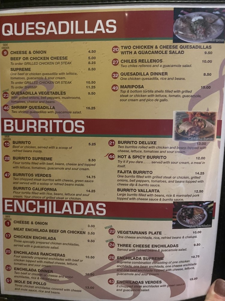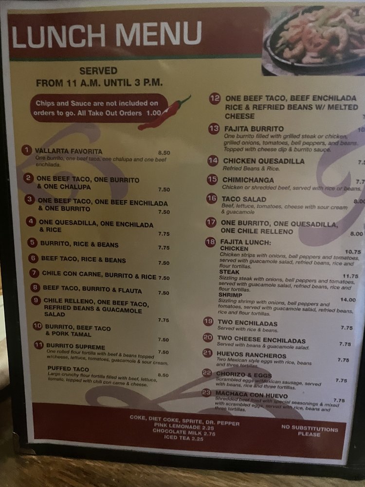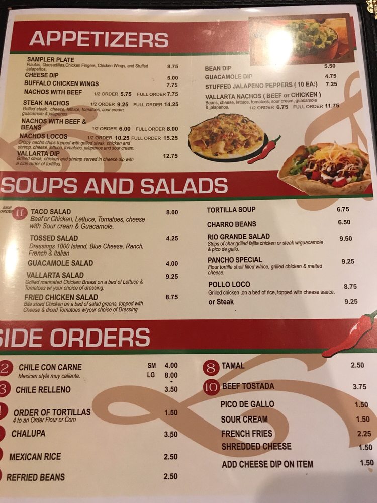 Introducing the menu at Vallarta Sorrento Road, a Mexican restaurant in Pensacola, FL, known for its authentic and delicious dishes. Customers rave about the stuffed peppers, hardshell tacos, and massive margaritas. The California Burrito, fajitas, and Chips & Salsa with Queso are all must-try items. The restaurant offers a cozy atmosphere with friendly staff and quick service. The menu features many vegetarian options, making it a great choice for all diners. The fresh salsa and Chili Relleno are favorites among regulars. Overall, Vallarta Sorrento Road stands out for its tasty food, excellent service, and strong margaritas, making it a top choice for Floridian Mexican cuisine.